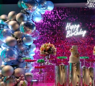 Os balões metalizados são uma opção sofisticada e versátil para decoração de eventos. Feitos de material resistente, possuem um acabamento brilhante e estão disponíveis em diversos núcleos, formatos e tamanhos, incluindo números, letras, personagens e figuras temáticas. Podem ser enchidos com ar ou gás hélio, garantindo um efeito flutuante quando necessário.